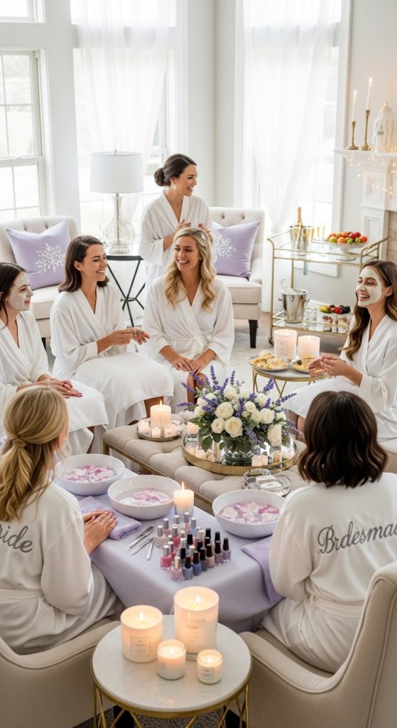 Activities: Include DIY face mask recipes, cucumber eye treatments, and scented candles. You can even hire a professional manicurist or massage therapist to elevate the experience.