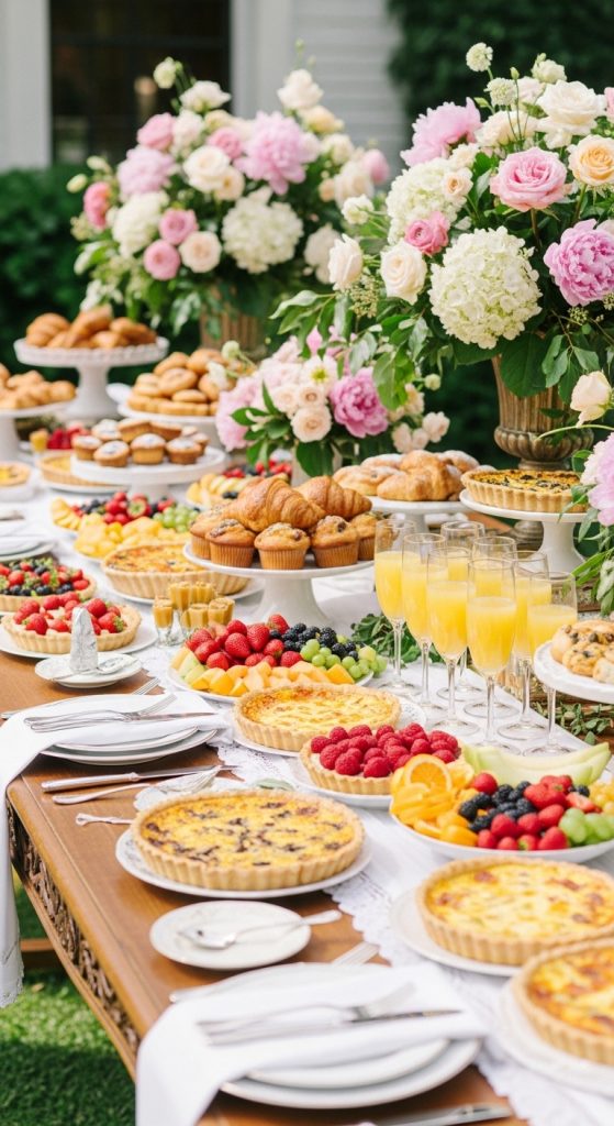 A brunch-themed bridal shower is ideal for late-morning celebrations. Serve a mix of sweet and savory items, such as quiches, pastries, fruit platters, and mimosas. A breakfast bar allows guests to customize their own plates, adding a fun, interactive element.