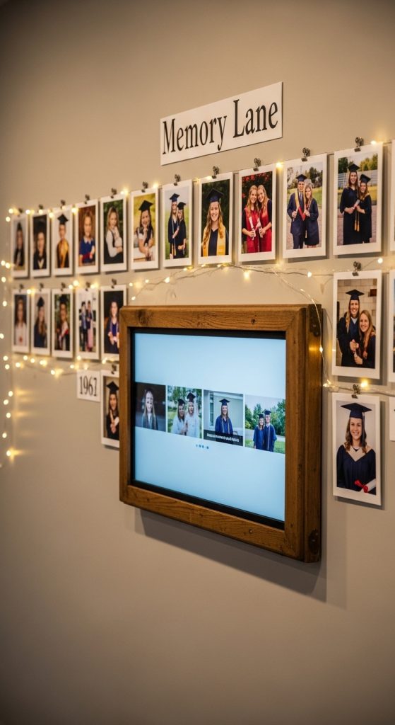 Set up a slideshow playing on a loop, and create a memory wall where guests can write notes, advice, or favorite shared memories. Decorate with school colors and incorporate meaningful memorabilia like sports jerseys, club gear, or framed assignments. This idea is sentimental and perfect for reflecting on growth and achievement.