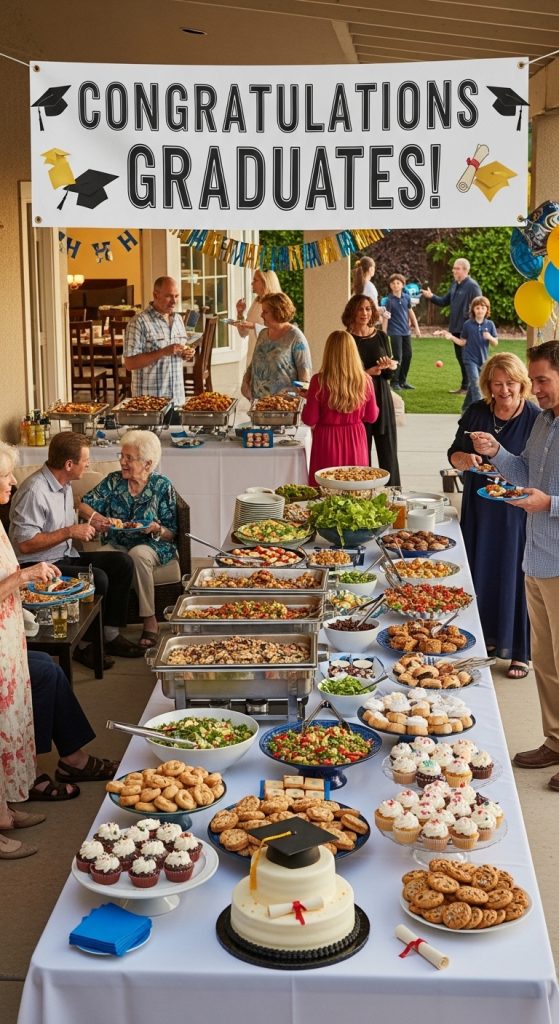 A graduation brunch offers a fresh and cheerful alternative to an evening party. Serve breakfast favorites like waffles, mini quiches, fruit platters, and pastries. Add a coffee and juice bar to elevate the experience.
