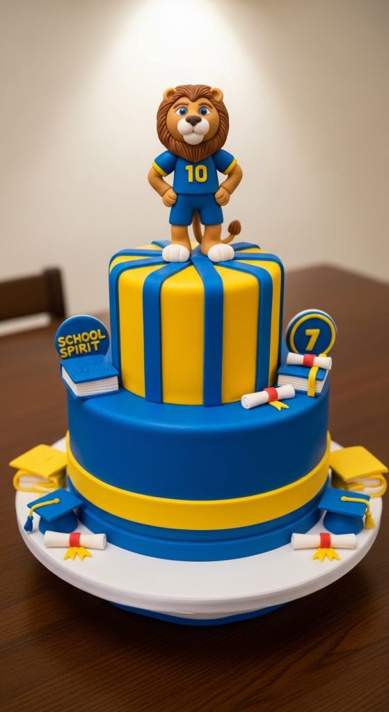 Show off your school pride with a cake decorated in your institution’s colors and logo. A sports team theme works especially well for high school or college graduates who were active in athletics. You could even top the cake with edible figurines representing the school mascot. This idea is perfect for guests who want to celebrate both academic accomplishments and school memories.