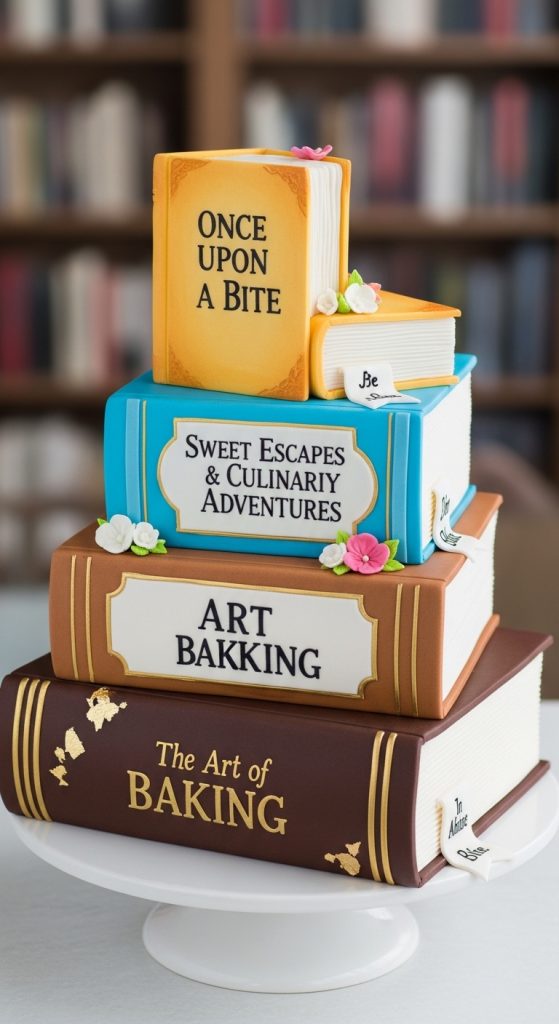 For graduates who love to read or are pursuing higher education, a cake shaped like a stack of books is an ideal choice. Each “book” can be a separate layer with the titles of the graduate’s favorite books, courses, or subjects written on the spine. This type of cake is visually striking and adds a personal touch that reflects the graduate’s academic journey.