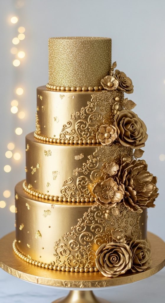 For a touch of elegance, consider a cake decorated with gold accents and edible glitter. This design is perfect for evening parties or formal celebrations. You can use shimmering gold fondant, metallic sugar pearls, or a glittery ombré effect. A cake like this feels luxurious and festive, adding sparkle to the graduation celebration.