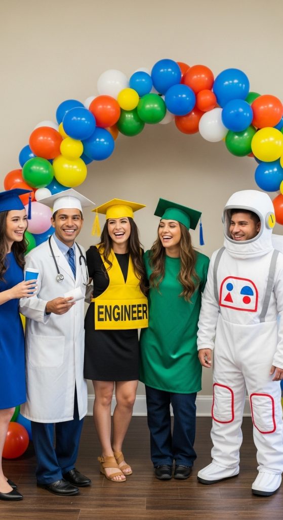 Add a playful twist by inviting guests to dress as their future career aspirations or as something related to the graduate’s intended field. If the graduate plans to become a doctor, engineer, artist, or entrepreneur, incorporate fun costume elements related to that path.