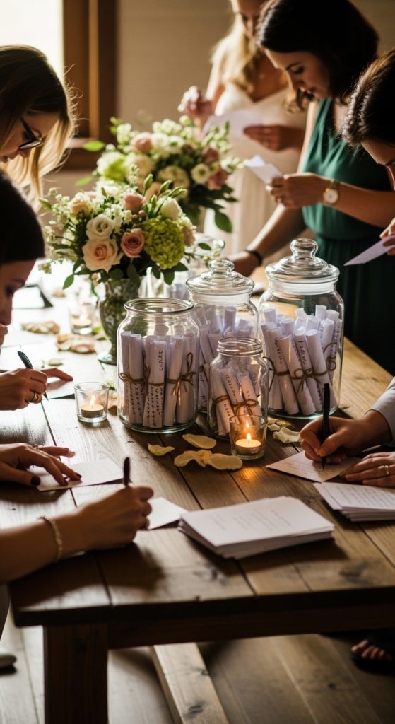 Set up a dedicated table where guests can leave advice for the future. Provide small cards with prompts like: