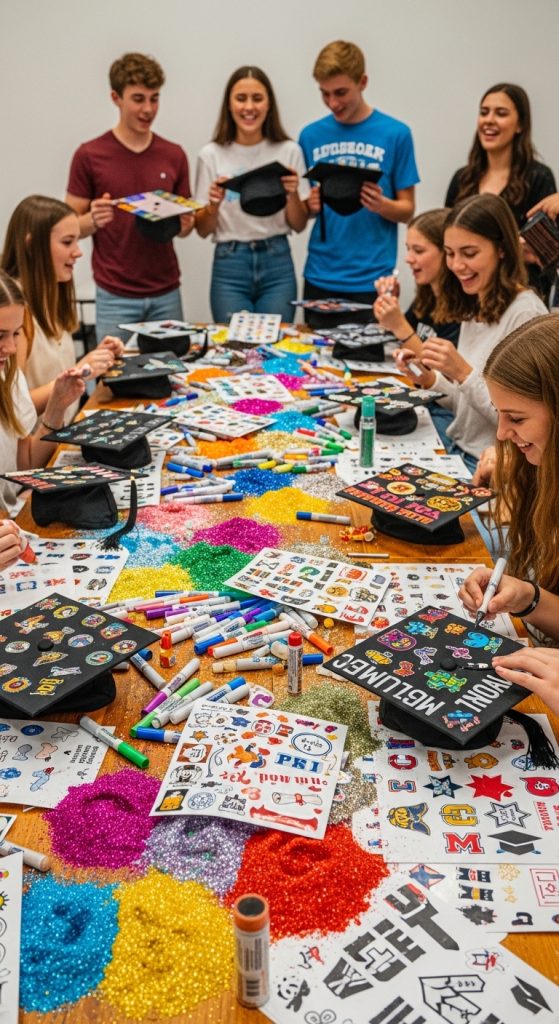 If you’re hosting the party before the official ceremony, consider organizing a mini cap-decorating station. Provide craft supplies like stickers, markers, glitter glue, inspirational quotes, and embellishments.