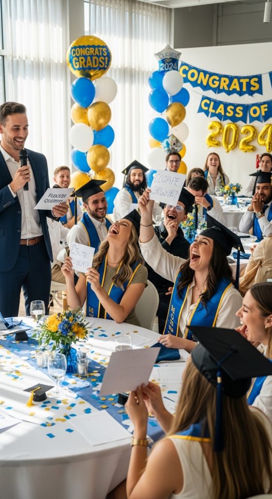 Read each question aloud and have guests write down answers. The person with the most correct responses wins a small prize. This game adds laughter and friendly competition while highlighting the graduate’s journey.