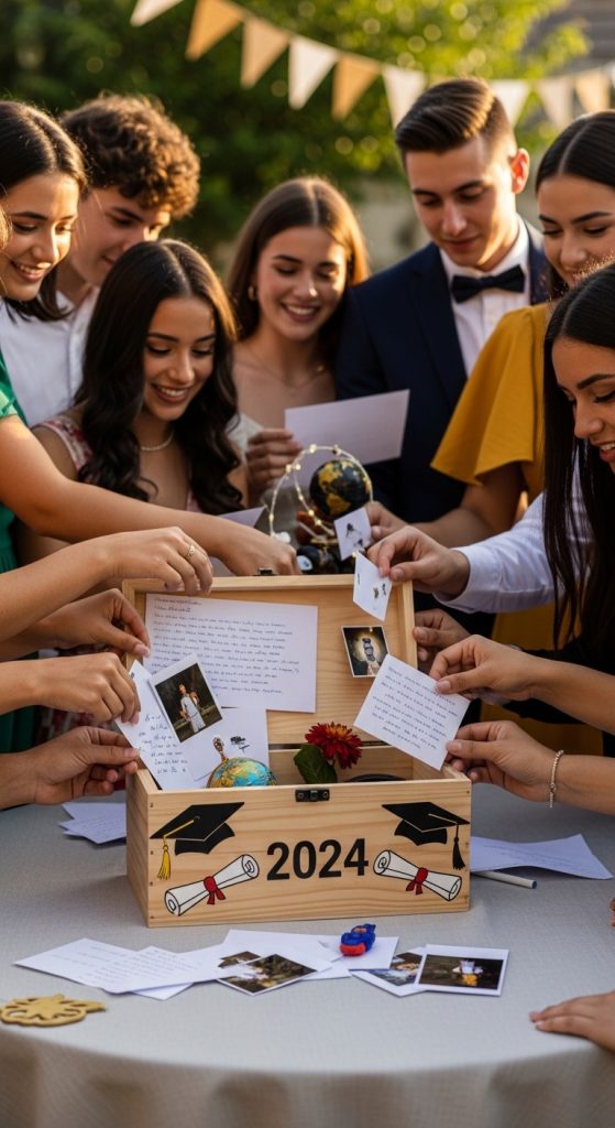 Create a graduation time capsule to be opened in five or ten years. Provide a box or container and encourage guests to contribute small notes, predictions, or mementos.