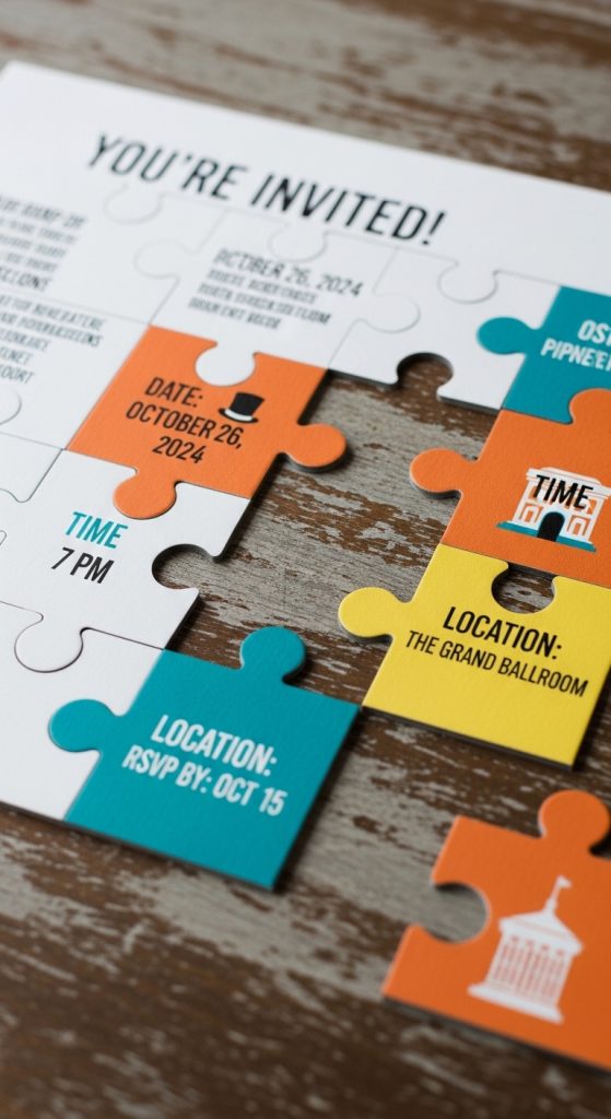Turn your invitation into a fun activity by designing it as a puzzle. Guests must assemble pieces to reveal the full invitation details. For a double graduation, each graduate can have half the puzzle, symbolizing their unique journey coming together in one celebration. This idea is memorable, interactive, and a perfect keepsake for family and friends.