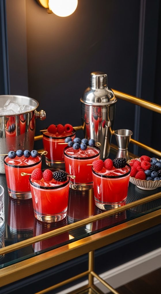 You can even create themed names like “Crimson Kiss,” “Midnight Love,” or “Scarlet Sparkle.” Garnish drinks with black sugar rims, red cherries, or edible glitter for a glamorous finish.