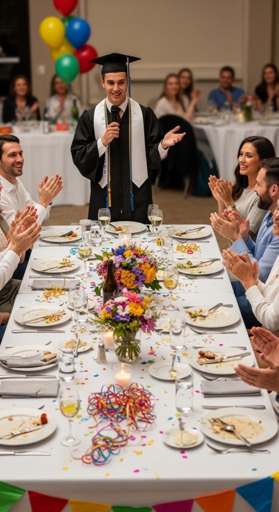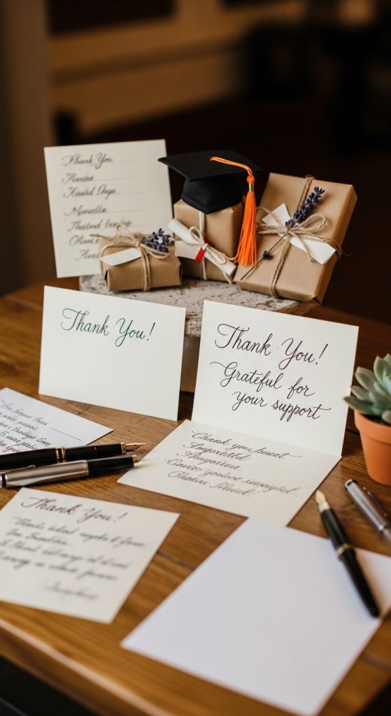 A little appreciation goes a long way. Encourage the graduate to personally greet guests, thank them for coming, and, if applicable, for gifts. Providing a small thank-you note or token of appreciation afterward reinforces gratitude. Polite acknowledgment of attendance and support makes guests feel valued and strengthens relationships.