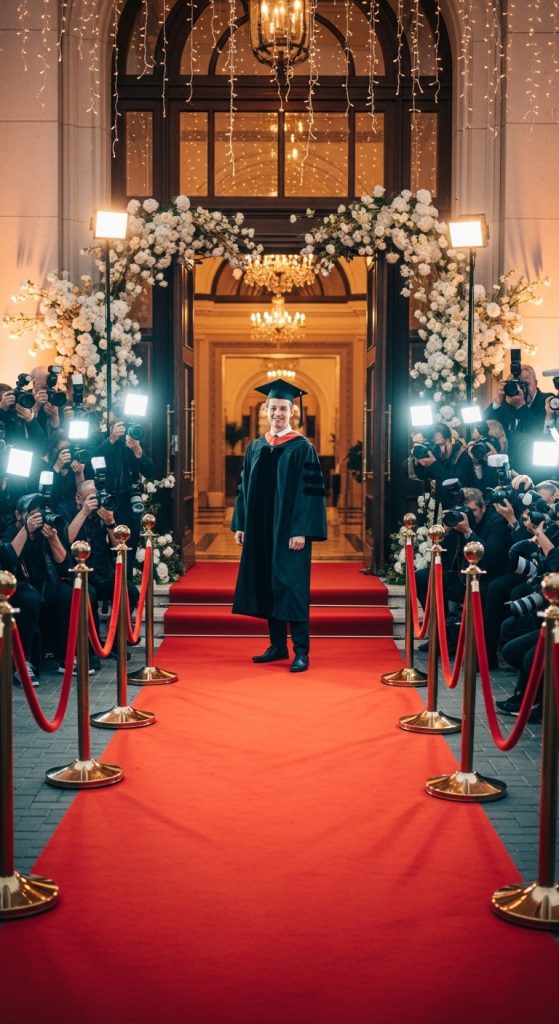 Your graduation party entrance sets the tone for the entire celebration. Whether you prefer glamour, high energy, creativity, or sentimentality, there’s an idea that matches your personality and style.