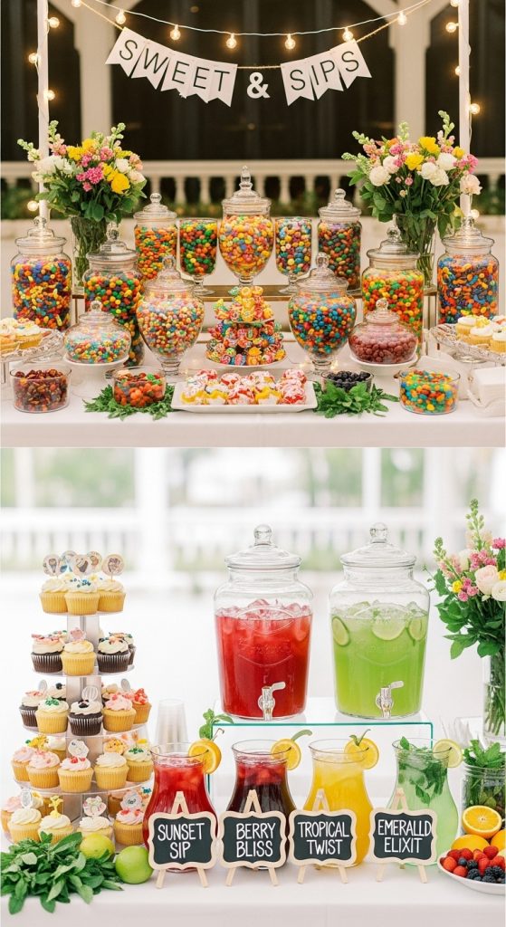 Elevate your party with personalized food and drink stations. Create a candy bar with the graduate’s favorite sweets, a taco bar, or even a dessert buffet featuring cupcakes with graduation-themed toppers. For drinks, consider a mocktail station with fun names inspired by the graduate’s hobbies or school subjects. Customizing the menu makes the celebration feel personal, unique, and deliciously fun.