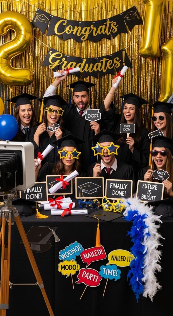 A photo booth is a must-have at any celebration, but you can make it special with graduation-themed props. Include items like diplomas, funny glasses, oversized hats, and chalkboards for guests to write messages. You can also create a backdrop that reflects the graduate’s personality—perhaps a favorite movie, sport, or travel destination. Photos captured at the booth give guests tangible memories to take home and keep the fun alive long after the party ends.