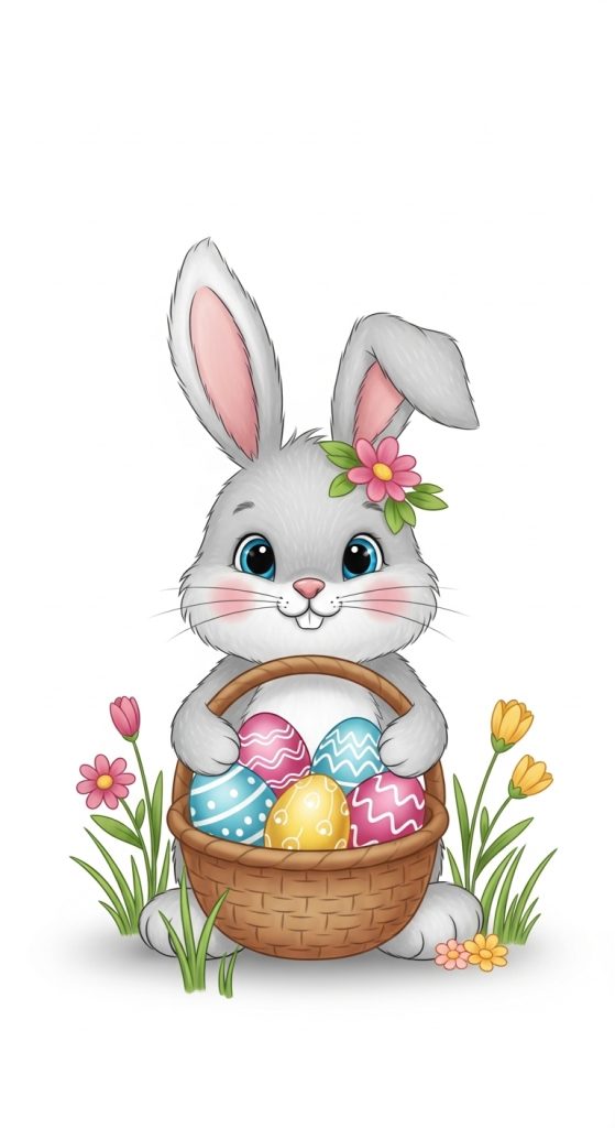 You can create variations such as a bunny holding a basket of eggs, a bunny peeking from behind grass, or a bunny wearing a bow tie. Cartoon-style bunnies are perfect for children’s materials, greeting cards, and social media posts.