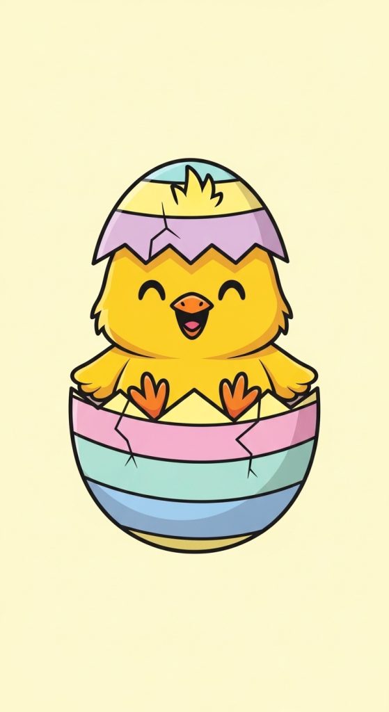 Chick clipart can be drawn standing beside eggs, hatching from cracked eggshells, or wearing tiny Easter hats. This idea works particularly well in children’s books, classroom worksheets, and Easter party decorations.