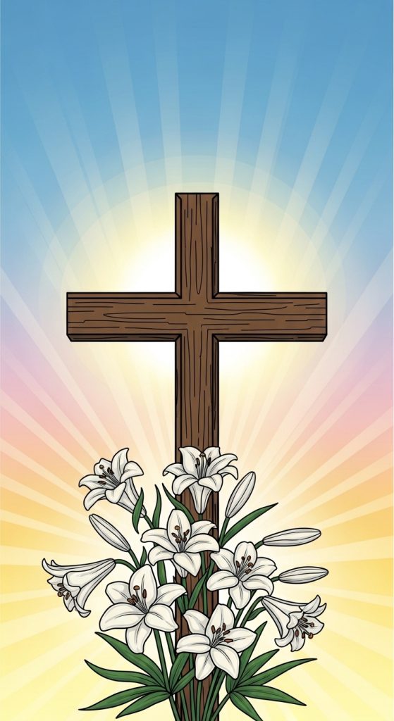 For many people, Easter is a deeply meaningful religious celebration. A cross surrounded by flowers or light rays can represent the spiritual side of the holiday.