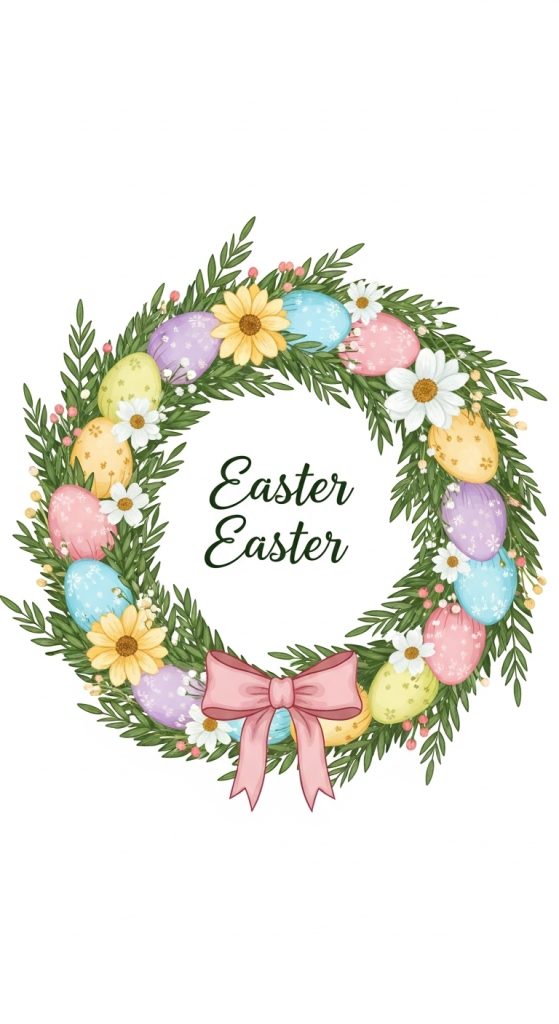 Artists can combine pastel eggs, small blossoms, leaves, and bows to create a delicate spring wreath. Sometimes a small bunny or chick is placed in the center to complete the design.