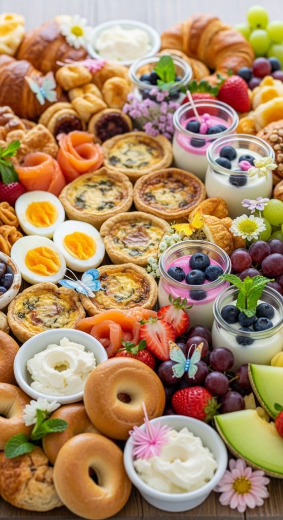 Easter brunch deserves a special spread, and a brunch charcuterie board is a unique way to serve breakfast favorites. Include hard-boiled eggs, mini quiches, smoked salmon, bagels, cream cheese, and fresh fruit. Add small pastries like croissants, Danish rolls, or cinnamon buns for a sweet touch. Small jars of yogurt or parfaits can also be included to diversify the textures. This board turns a simple brunch into a luxurious and interactive experience for guests.