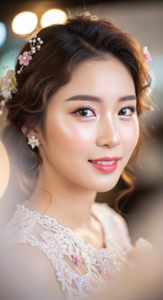 The half-up half-down hairstyle is perfect for those who want the best of both worlds. In Korean beauty styling, the top portion of the hair is gently tied or clipped while the rest flows naturally down the shoulders. Adding soft curls enhances the elegance. Decorative hair clips or ribbons can elevate this style and make it feel extra special for the celebration.
