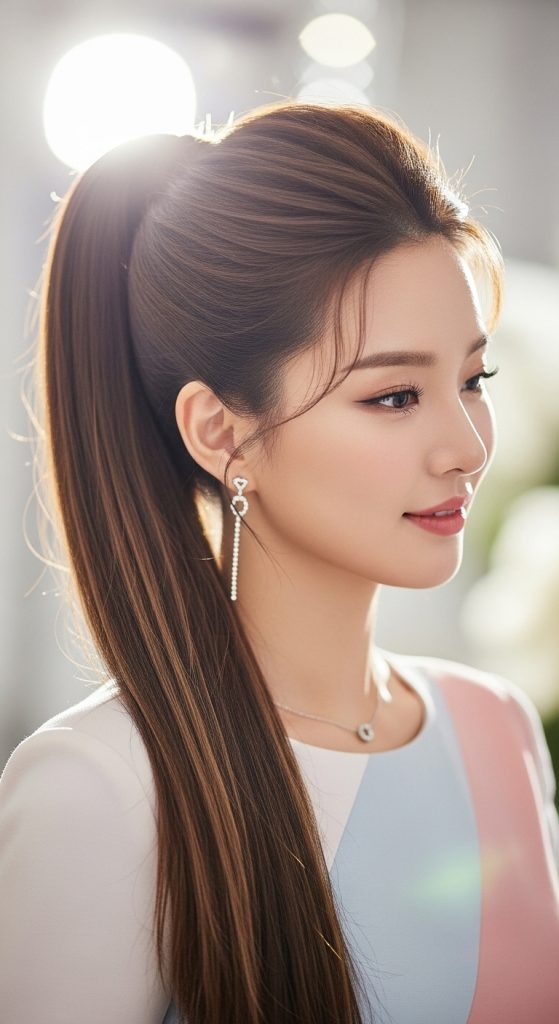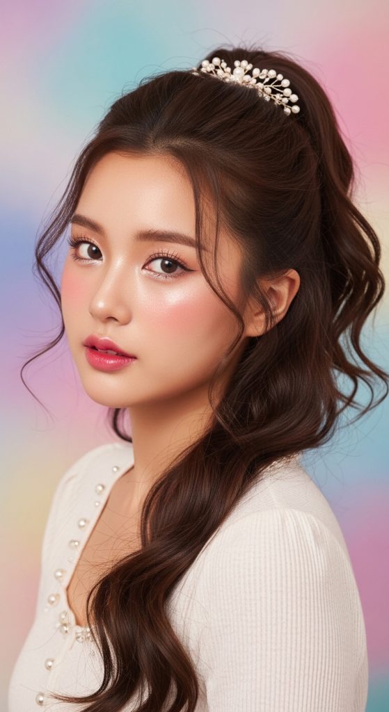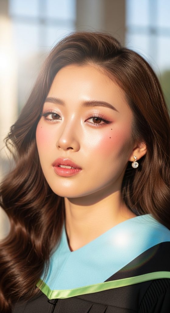 A high ponytail can look incredibly stylish when done with the Korean beauty approach. Instead of pulling the hair too tight, Korean styling adds soft volume at the crown to create a fuller shape. Wrapping a small strand of hair around the hair tie makes the ponytail appear more elegant. This hairstyle is energetic, youthful, and perfect for a fun graduation celebration.