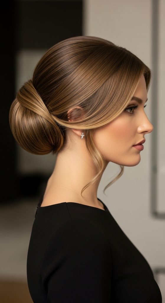 A sleek low bun is timeless and effortlessly sophisticated. Perfect for evening events, this hairstyle keeps hair off the face while maintaining elegance. Smooth your hair with a lightweight serum or cream, secure it into a low bun at the nape of your neck, and let a few soft tendrils frame your face. This look pairs beautifully with statement earrings or bold makeup.