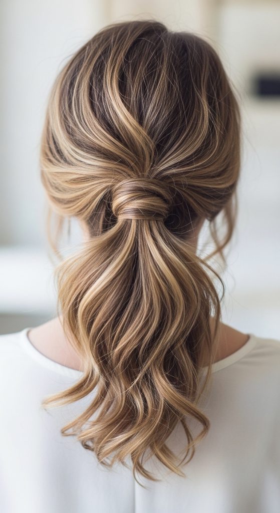 A low messy ponytail exudes relaxed elegance. To achieve this look, lightly curl the ends of your hair and gather it at the nape of your neck. Loosen a few strands around the face and crown to soften the look. This hairstyle is easy to recreate and works for both casual and formal occasions.