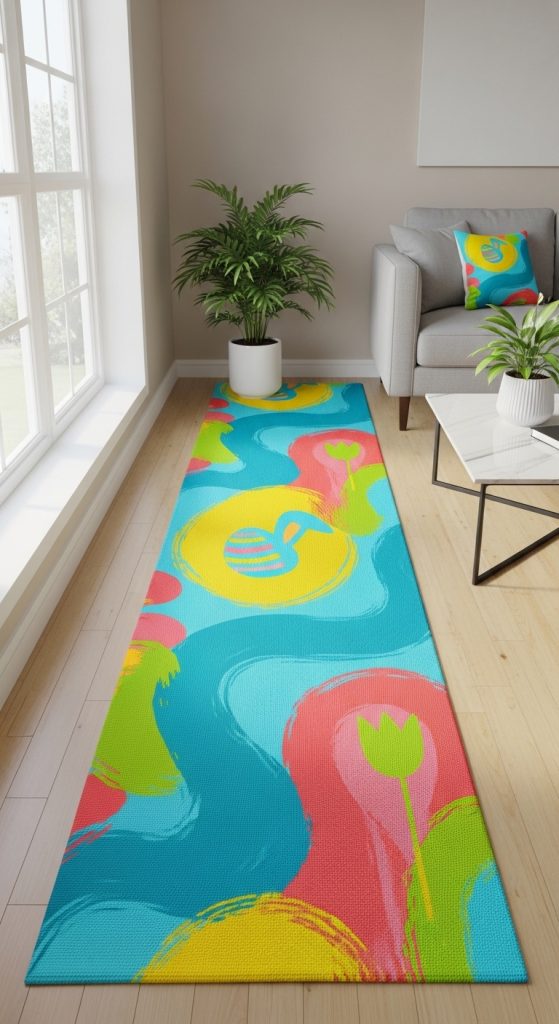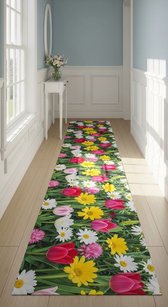 Spring blooms are at the heart of Easter celebrations. A floral-themed floor runner with tulips, daisies, and lilies can mimic the feeling of walking through a blooming garden. Choose a design with a light background and vibrant flowers to brighten up darker hallways or narrow spaces. This style works particularly well in entryways, creating a fresh and inviting first impression.