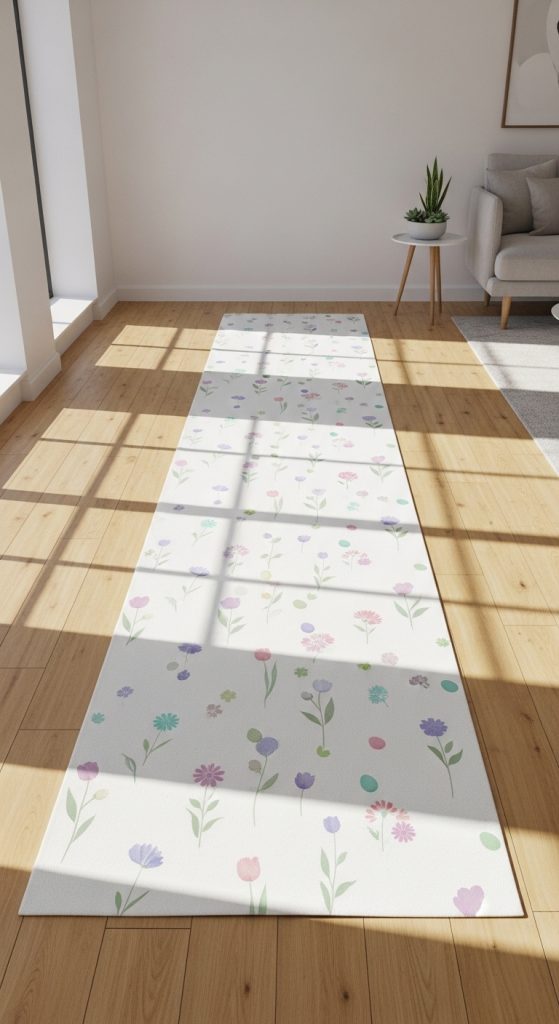 Pastel colors are synonymous with Easter, making a patchwork-style floor runner an ideal choice. Combine soft shades like baby pink, mint green, lavender, and pale yellow into a quilt-inspired design. This type of runner creates a cozy, handmade feel and works beautifully in both modern and traditional homes. The patchwork effect also allows for mixing patterns such as florals, polka dots, and stripes without overwhelming the space.