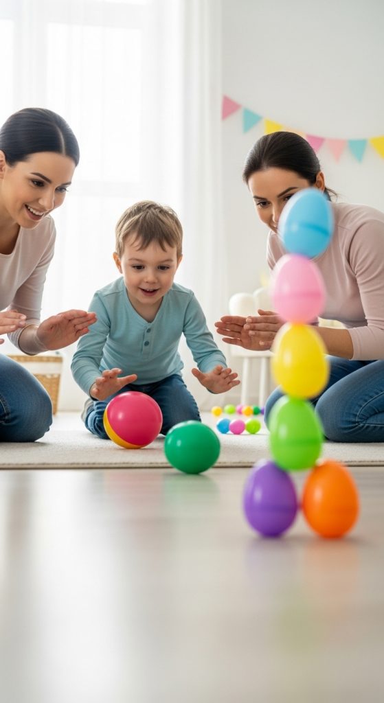 Group games can sometimes be overwhelming, so consider one-on-one or small-group activities. Simple games like rolling a ball to knock over plastic eggs or matching egg colors can be both fun and manageable. These activities allow for personalized interaction and support, ensuring that everyone feels included.