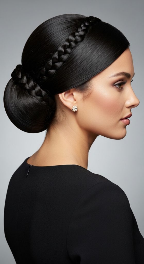 The classic low braided bun is perfect for those who prefer a clean and minimal look. Hair is first gathered at the nape of the neck, braided, and then wrapped into a bun. This style is ideal for formal meetings or everyday wear because it is both comfortable and polished. You can keep it sleek with gel or leave a few strands loose for a softer appearance.