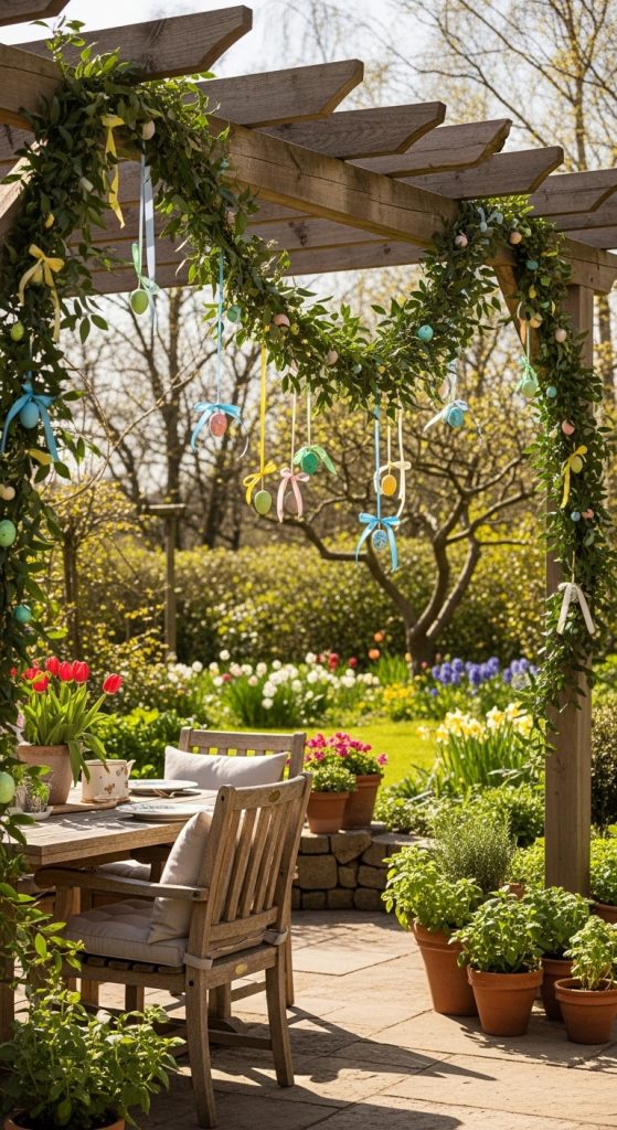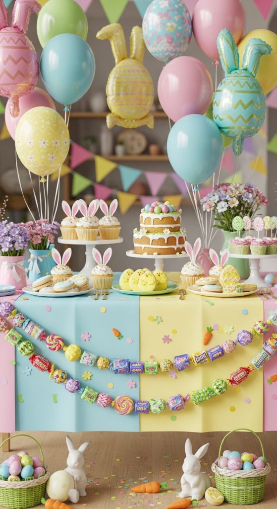 A fun and interactive idea, especially for families, is a candy garland. Wrap small chocolates or Easter treats in colorful foil or paper and attach them to a string. This garland can serve as both decoration and a treat for guests or children. It’s perfect for Easter parties and festive gatherings.
