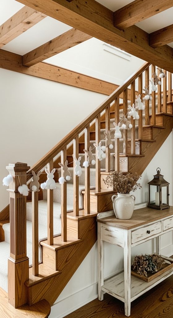 Bunnies are synonymous with Easter celebrations. A garland featuring bunny cutouts made from felt, paper, or wood can add a whimsical touch. You can paint them in neutral tones or pastel shades and connect them with string or ribbon. Adding cotton tails or small pom-poms can enhance the visual appeal.
