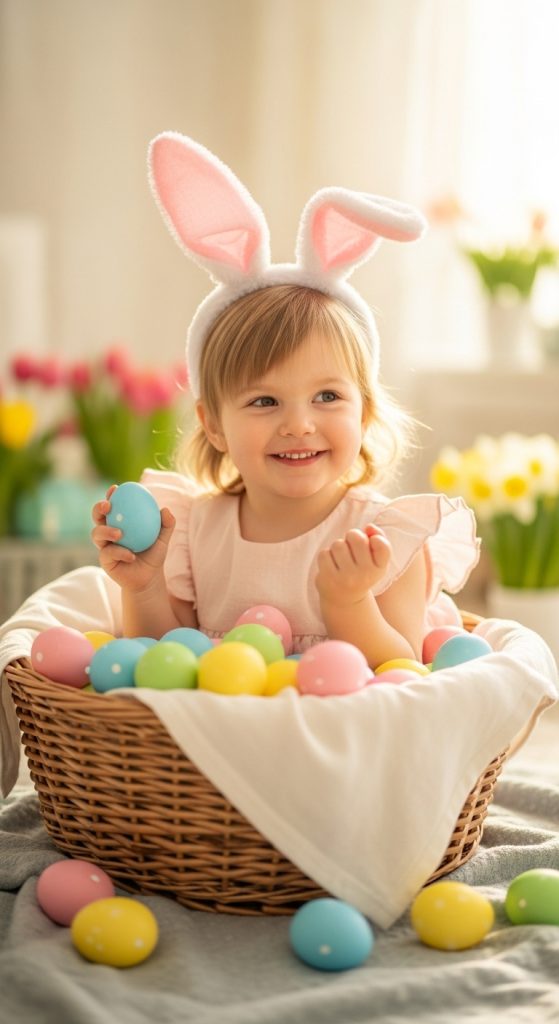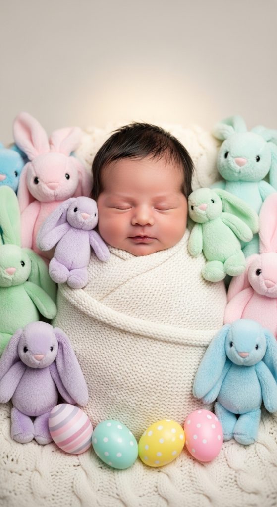 Capturing a baby’s first Easter is a meaningful milestone for many parents. Use soft textures, plush blankets, and gentle lighting to create a calm environment. Props such as tiny bunny hats, small baskets, and pastel toys can make the session adorable without overwhelming the baby. Safety and comfort should always be prioritized in this setup.