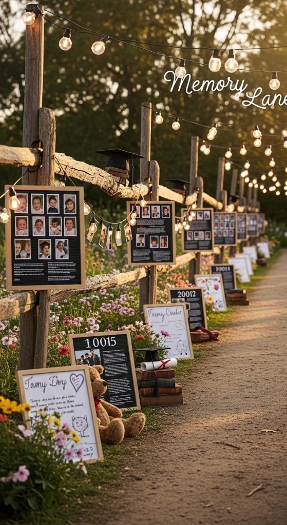 Take guests on a nostalgic journey by showcasing the graduate’s life milestones. Create a timeline with photos from childhood to graduation. Use display boards, scrapbooks, and videos to tell the story. This theme adds a personal and emotional touch to the event.