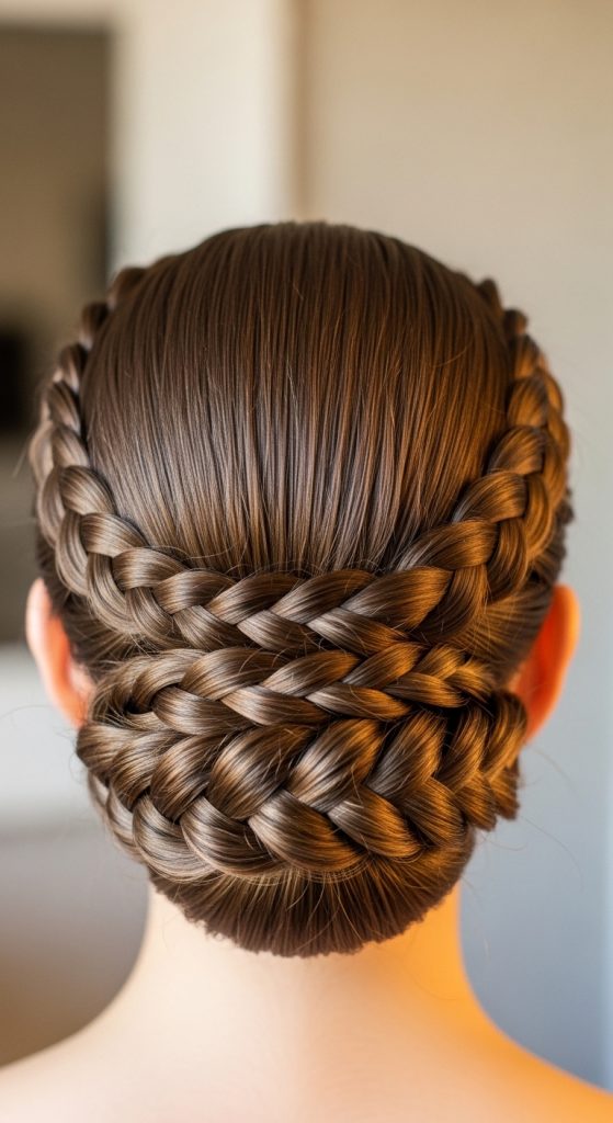 Instead of braiding, twist sections of your hair before wrapping them into a bun. The twists create a subtle pattern that adds visual interest while keeping the sleek aesthetic intact. This style is quick to achieve and works well for medium to long hair.