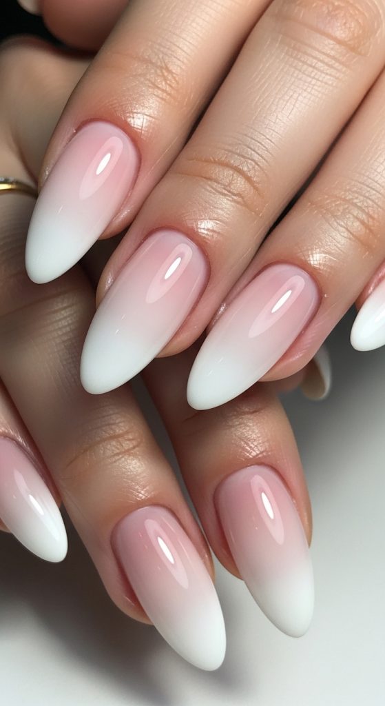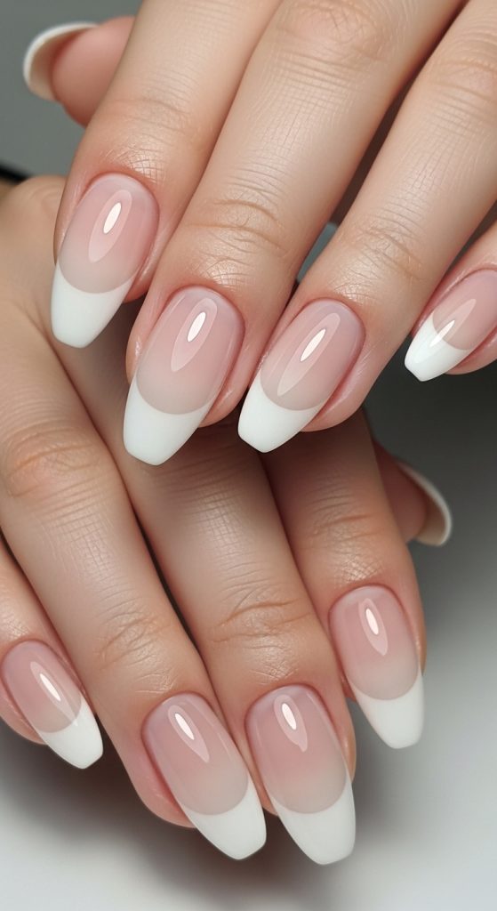 The most popular variation of ombre French nails is the soft pink-to-white gradient. This look mimics the natural nail bed and transitions into a clean white tip. It’s perfect for weddings, formal events, or anyone who loves a polished, sophisticated appearance. The smooth blend makes the nails look longer and more refined.