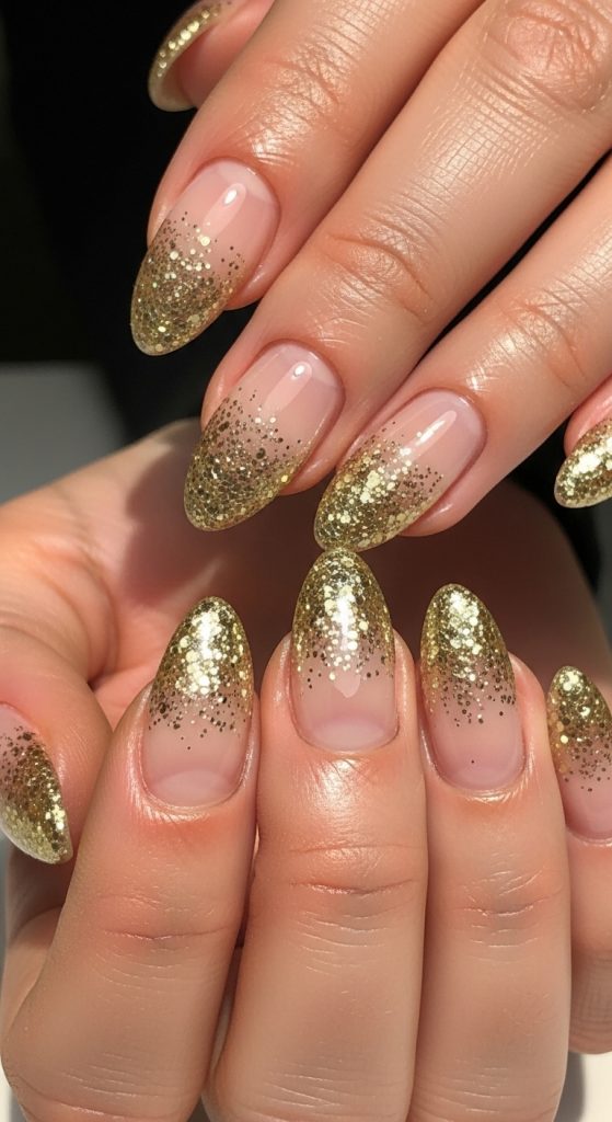 Add a touch of sparkle by incorporating glitter into your ombre French nails. Start with a neutral base and blend into a glittery tip using silver, gold, or rose gold. This design is perfect for parties, holidays, or whenever you want your nails to stand out.