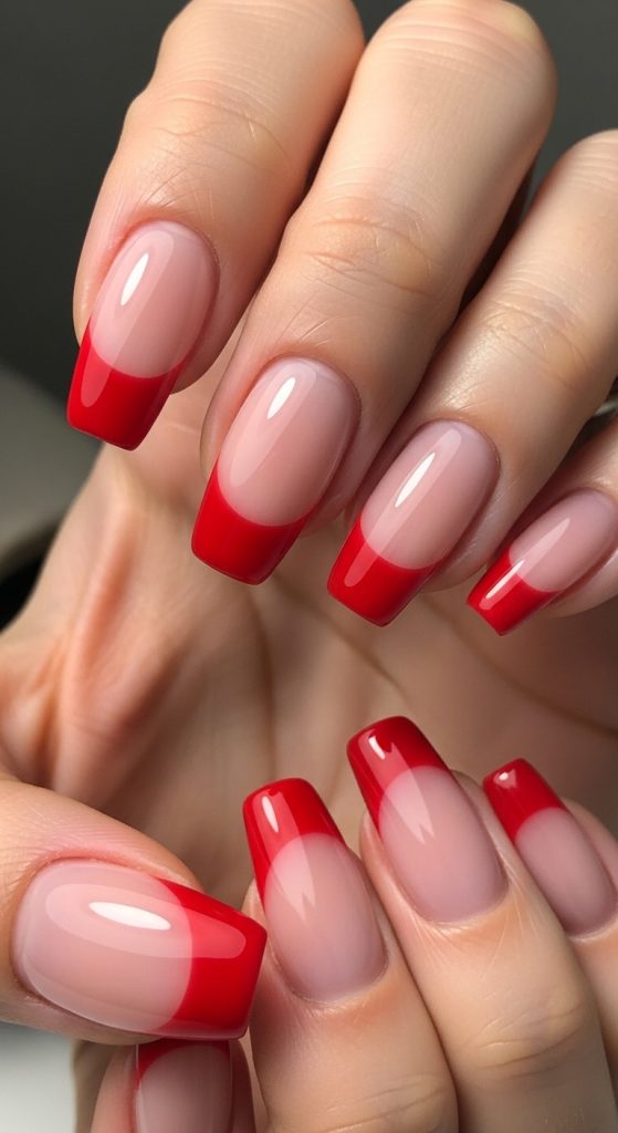 If you love vibrant nails, experiment with bold colors like red, cobalt blue, or neon pink. Instead of the traditional white tip, fade a bright color into a neutral or transparent base. This creates a striking contrast while still maintaining the elegance of a French manicure.