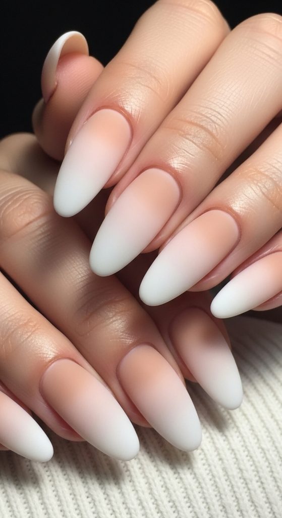 Switch things up by using a matte top coat instead of a glossy finish. Matte ombre nails look velvety and sophisticated. Neutral tones like beige, taupe, and blush work beautifully in this style, giving your manicure a unique texture.