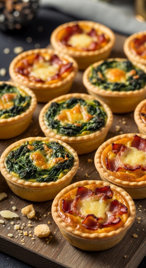 Mini quiches are flavorful, customizable, and perfect for serving at room temperature. You can prepare them with different fillings such as spinach and cheese, mushroom and onion, or bacon and cheddar.