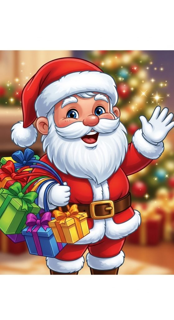 You can choose versions where Santa is holding gifts, waving, or riding his sleigh. Bright colors like red, white, and gold make the wallpaper lively and eye-catching.