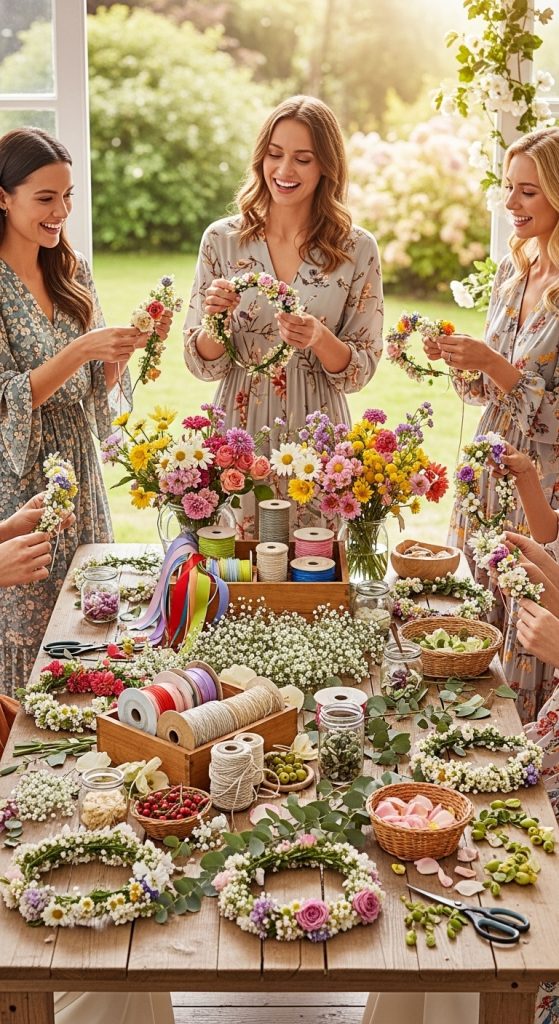 A flower crown station is a perfect activity that fits the bohemian, island vibe. Provide fresh or artificial flowers, floral wire, and ribbon so guests can create their own crowns. This doubles as both an activity and a stylish accessory for photos.