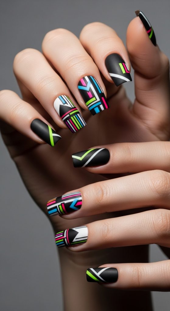 Geometric patterns are great for those who love contemporary art-inspired styles and want their nails to stand out as a focal point of their look.