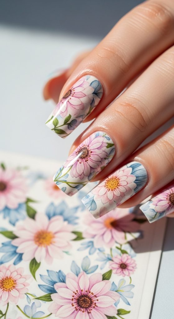 Floral nail wraps never go out of style. Whether you prefer delicate pastel flowers or vibrant tropical blooms, floral designs can suit any mood or season. Spring and summer are especially popular times to wear floral wraps, but darker floral patterns on a black or deep background can be perfect for fall and winter.