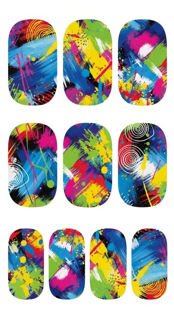 Abstract nail wraps are perfect for artistic individuals who love unique and unconventional styles. These designs often feature random brush strokes, color splashes, or blended hues that resemble modern art paintings.