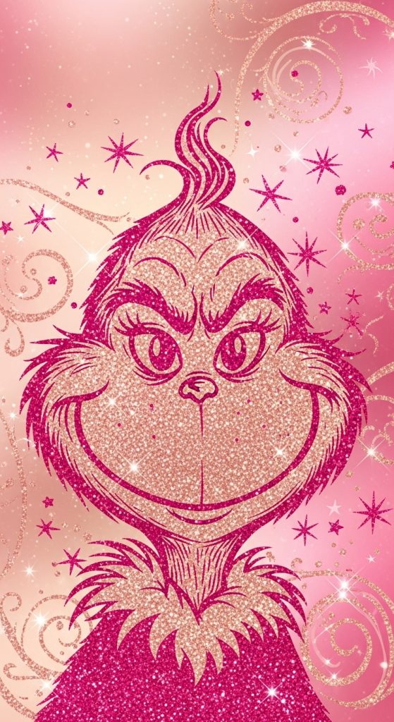 For those who love sparkle and glam, a pink glitter Grinch wallpaper is a perfect fit. The Grinch can be illustrated with glitter effects in shades of rose gold, hot pink, or magenta, often combined with sparkly textures in the background.