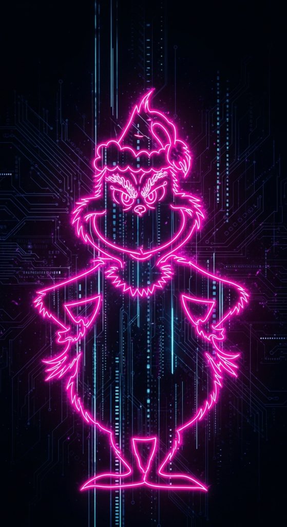 For a more modern and edgy look, try a neon-inspired dark pink Grinch wallpaper. The background can be deep black or dark purple, with neon pink outlines highlighting the Grinch’s features.