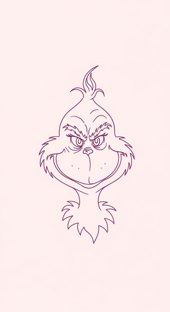 Minimalist designs are always in style. A pink line art version of the Grinch on a plain or lightly textured background can create a sleek and elegant wallpaper.
