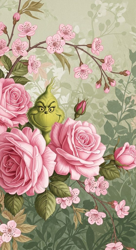 This style is elegant and soft, making it perfect for users who enjoy a blend of cute and classy aesthetics. The flowers add a gentle, feminine touch to the mischievous Grinch character.